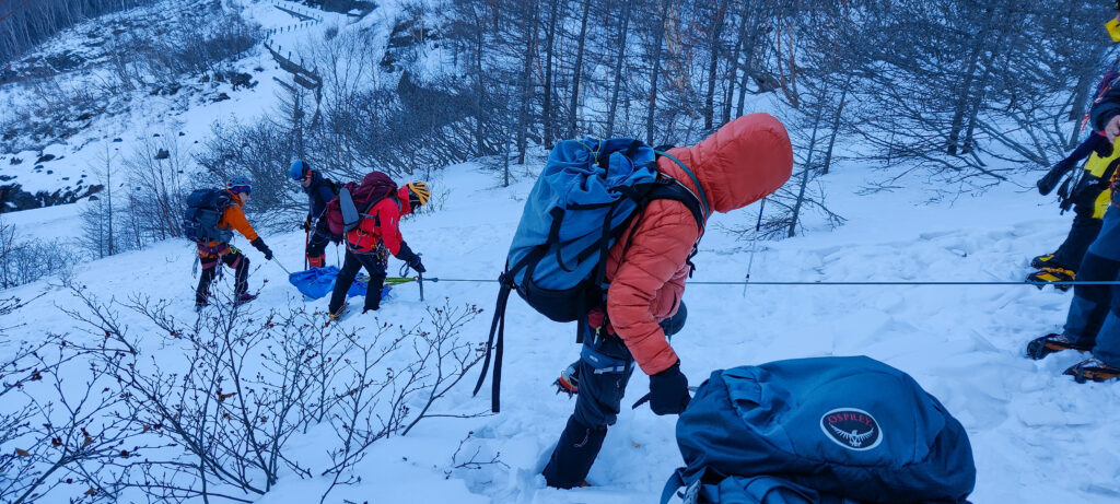 木曽駒ヶ岳周辺にて雪山での行動に必要な基礎訓練を行います。